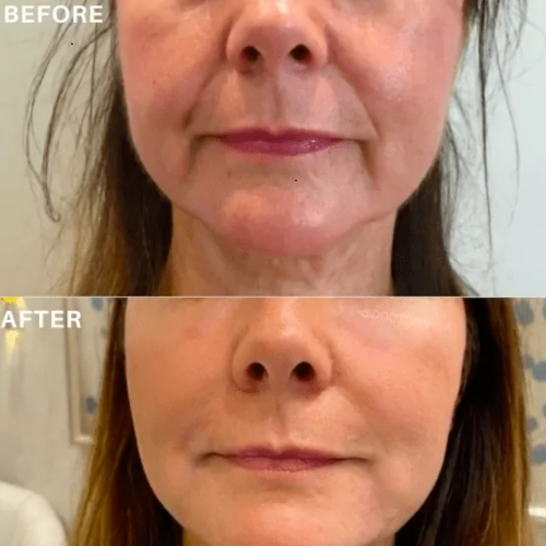 Treatment: Dermal filler is placed carefully to soften the lines and support the lower-face structure with a conservative technique.